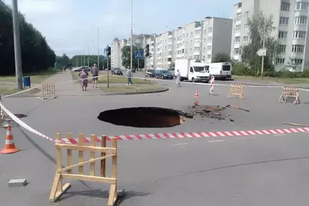 Огромная яма образовалась прямо на дороге в Барановичах3